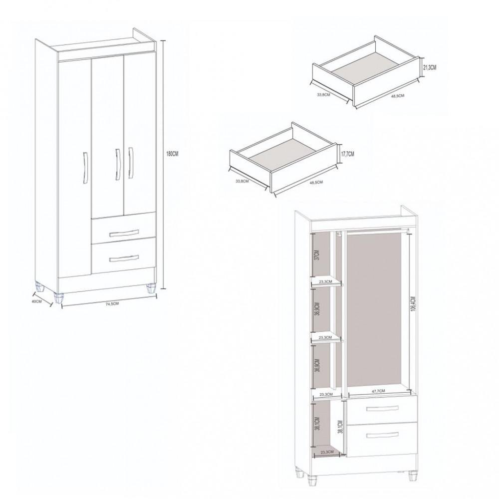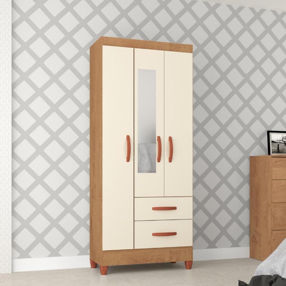 A presença do espelho nas portas é um detalhe muito útil, eliminando a necessidade de um espelho extra no quarto.